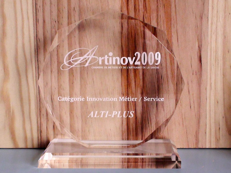 Notre société Alti-Plus est lauréate du concours Artinov Savoie 2009 et a été nominée au concours Artinov Rhône-Alpes 2009 organisé par la Chambre de Métiers et de l’Artisanat (CMA).